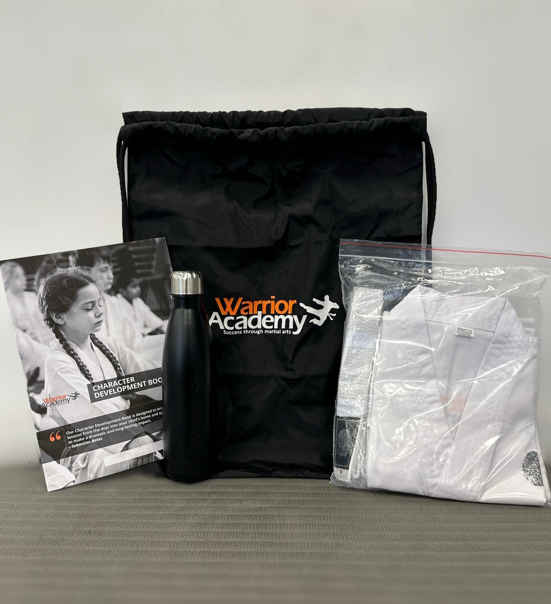 Home / Sparring Kit / Starter Pack Starter Pack£55.00 Starter Pack quantity Add to cart Category: Sparring Kit Product ID: 15234 Description Description To start you on your Black Belt Journey! Includes: Warrior Academy Uniform Character Development Workbook Water Bottle Draw String Bag Related products Warrior Range Shin Pads £20.00 Add to cart Warrior range Gloves, fingers uncovered. £28.00 Add to cart Warrior Range Feet Pads £28.00 Add to cart Gum Shield £3.00 Add to cart